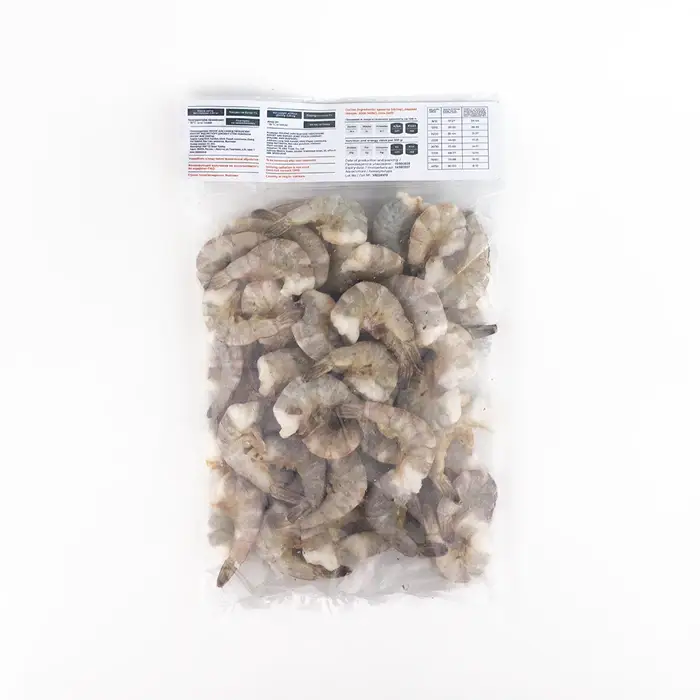 Тигровые креветки, выловленные из вод Вьетнама, в панцире, очищены от головы. Креветки имеют серо-синий оттенок, плотную, упругую, сочную текстуру, сладковатый вкус и легкий морской аромат.