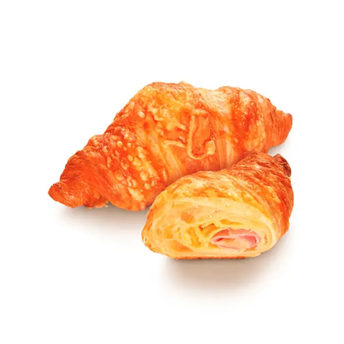 Воздушный круассан с мягкой, слоистой текстурой и нежной начинкой из ветчины и сыра.
