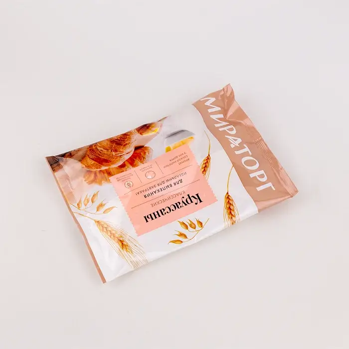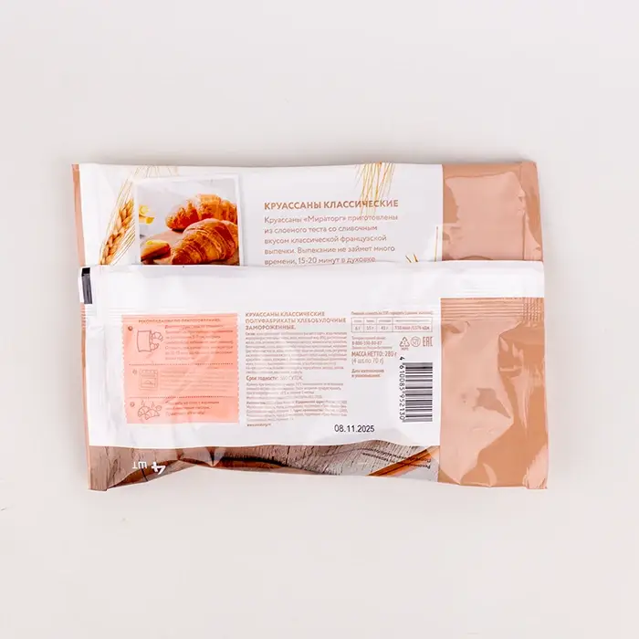 Круассан имеет легкую, воздушную и пористую структуру с хрустящей при надломе корочкой, насыщенный аромат и вкус свежего хлеба с маслом.
