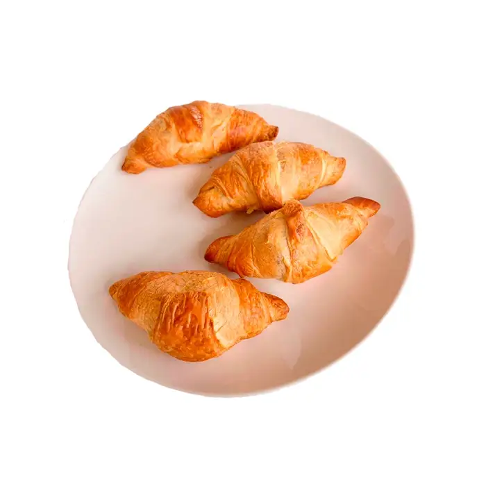Достаньте круассаны из упаковки. Выложите на противень с пергаментом на расстоянии 5–7 сантиметров, накройте салфеткой (во избежание заветривания). Оставьте при комнатной температуре на 10–15 минут до полного размораживания продукта. Разогрейте духовку до 200°C с конвекцией или до 220°C верхний / нижний нагрев. Выпекайте 15–20 минут до получения золотистого цвета. Слегка охладите.