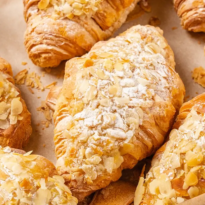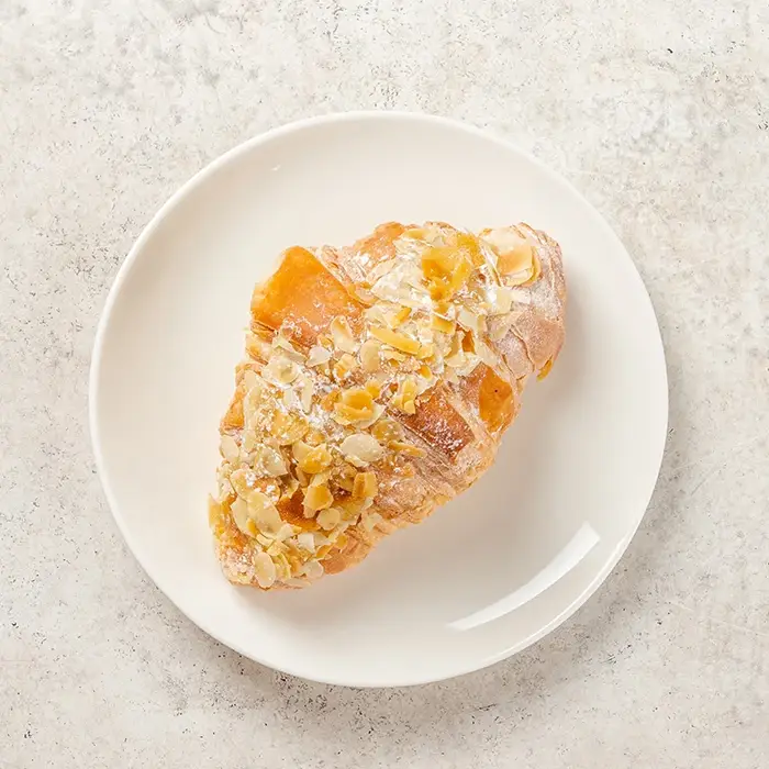Круассан отпечённый с миндалем и миндальным кремом.
