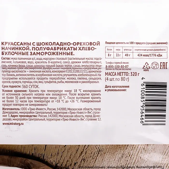 Круассаны с шоколадно-ореховой начинкой «Мираторг», 320 г