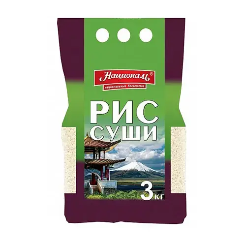 Специально отобанный элитный сорт среднезёрного риса. Непромокаемая упаковка-мешок оснащена застежкой в верхней части пакета.