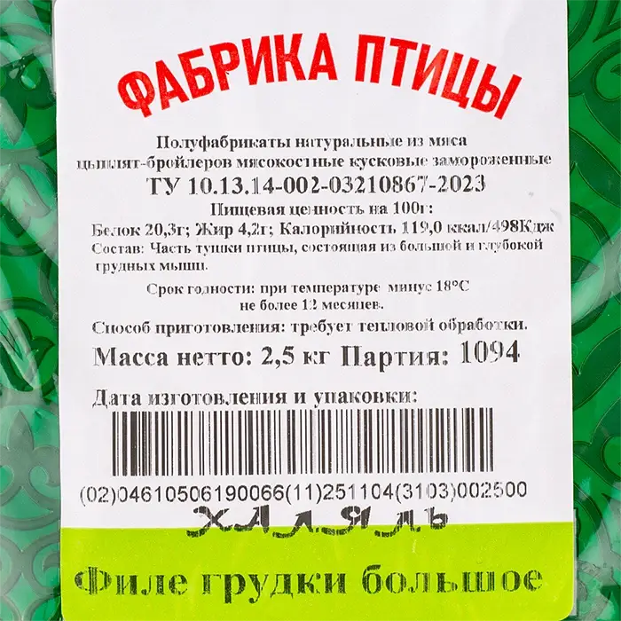 Курица филе грудки Халяль «Фабрика Птицы», 2,5 кг