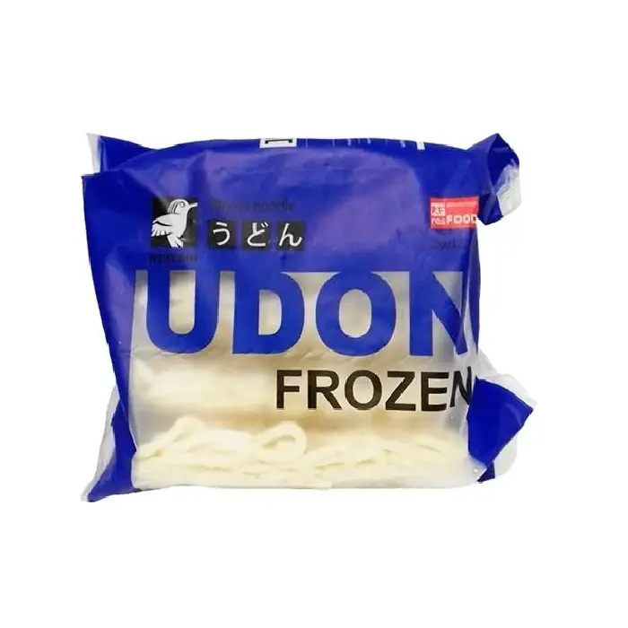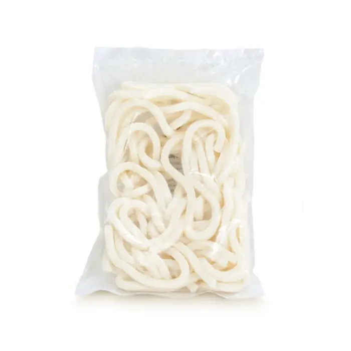 Варено-мороженая лапша с нежным пшеничным вкусом и 100% натуральным составом: мука высшего сорта, крахмал тапиоки, соль и вода. Лапша круглая в сечении, почти в два раза шире традиционного удона (5 мм). Крахмал тапиока в составе придает лапше эластичность и упругость.