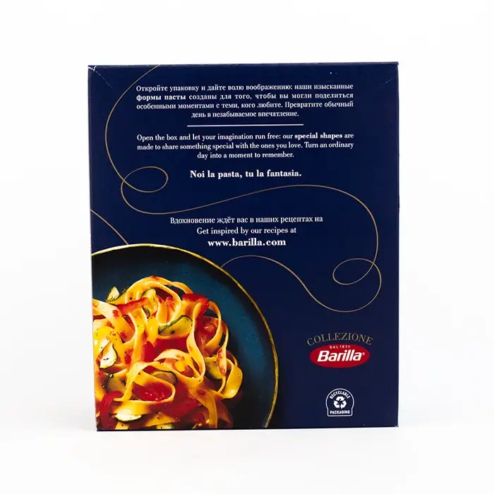 Феттуччине — классическая итальянская паста в форме длинных, тонких плоских полосок теста шириной около 7 мм. Паста имеет пористую, слегка шероховатую поверхность. Феттуччине производится из твердых сортов пшеницы и обладает плотной текстурой, что помогает впитывать и удерживать в себе соус. Паста обладает нейтральным вкусом и легким ароматом пшеницы. Феттуччине в процессе варки сохраняют форму.