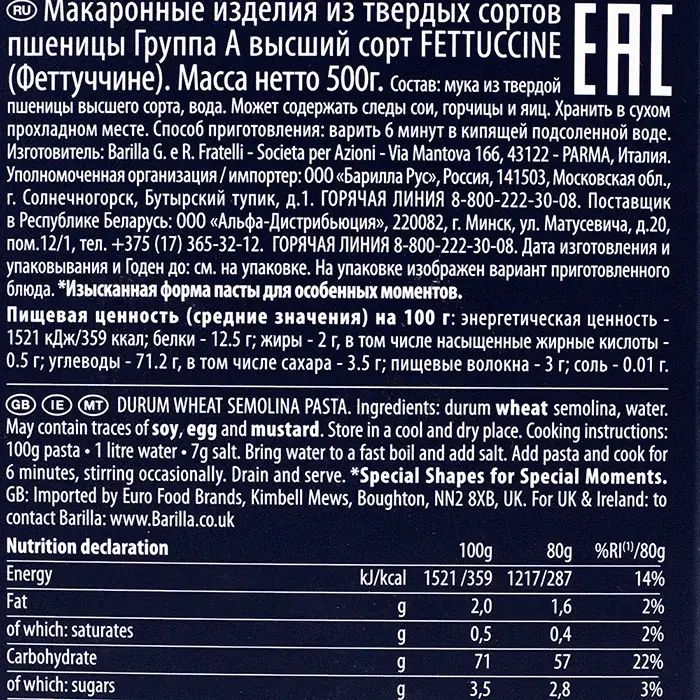 Мука из твердой пшеницы высшего сорта, вода. Может содержать следы сои.