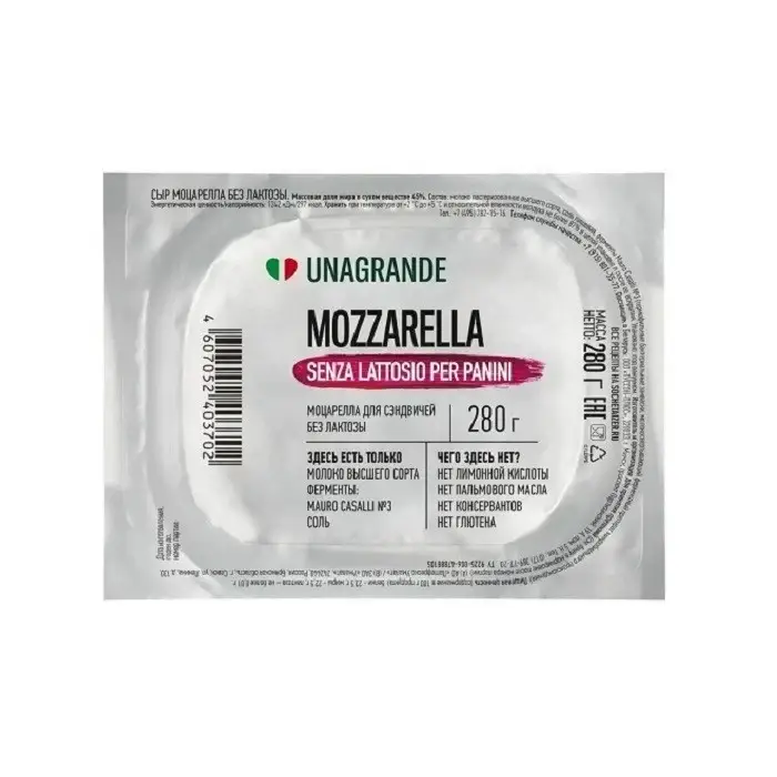 Сыр Моцарелла без лактозы для сэндвичей 45% Unagrande, 280 г