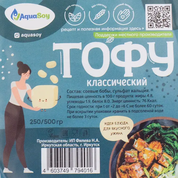 Классический растительный тофу из соевых бобов содержит минимальное количество жира, в нем нет холестерина, а белка больше, чем в любом другом растительном продукте. Тофу имеет мягкий вкус и нежную текстуру.
