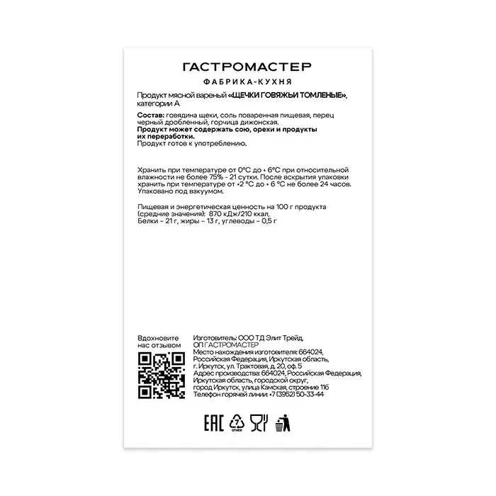 говядина щеки, соль поваренная пищевая, перец черный дробленный, горчица дижонская.