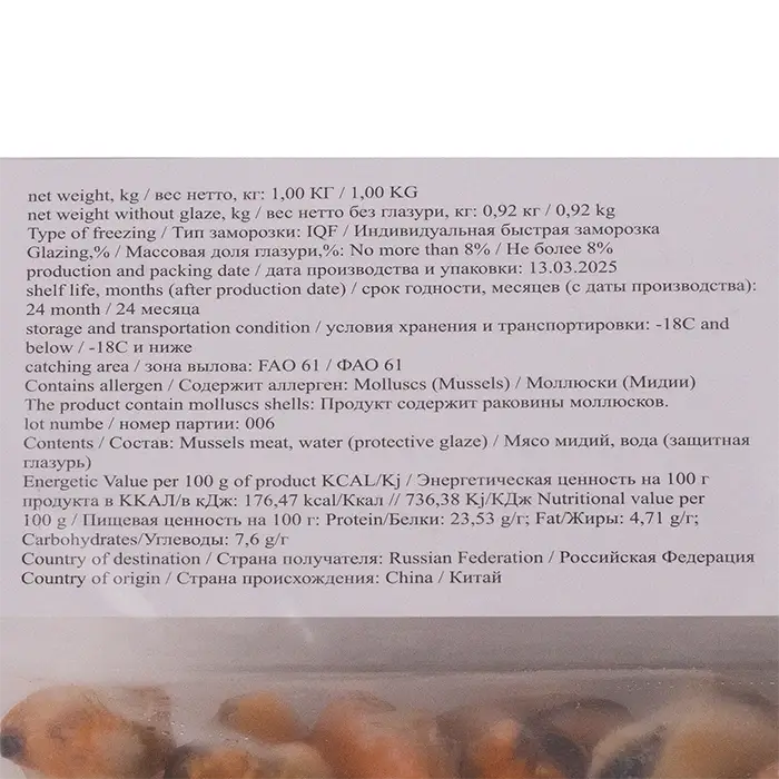 Глазурь 8%, что обеспечивает плотную структуру мяса и позволяет сохранить натуральный вкус морепродукта.