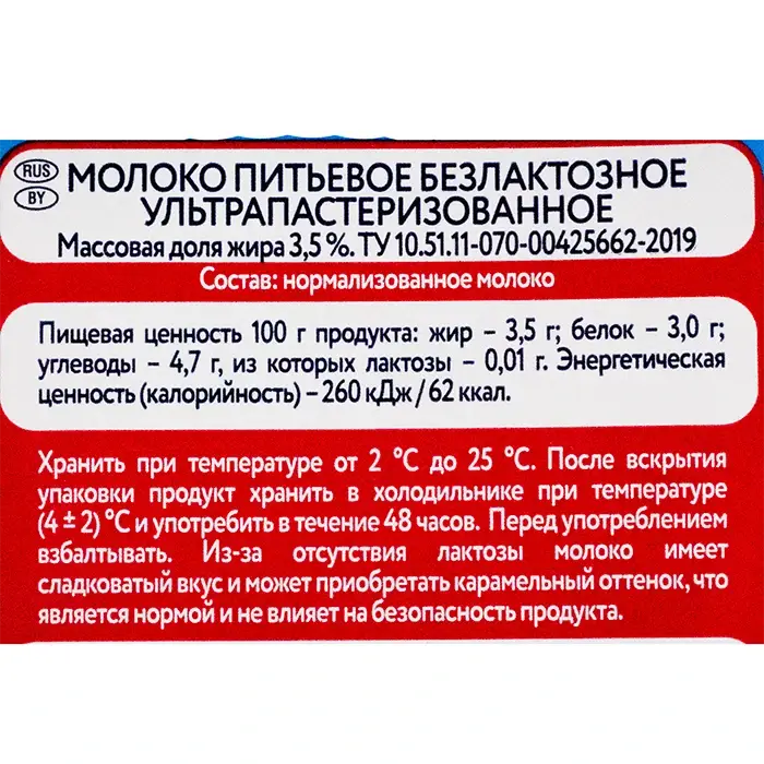 Молоко имеет жидкую консистенцию, не содержит лактозу (молочный сахар), легко усваивается. Сохраняет все полезные компоненты обычного молока.