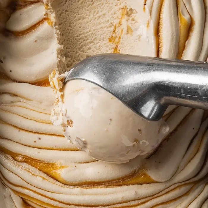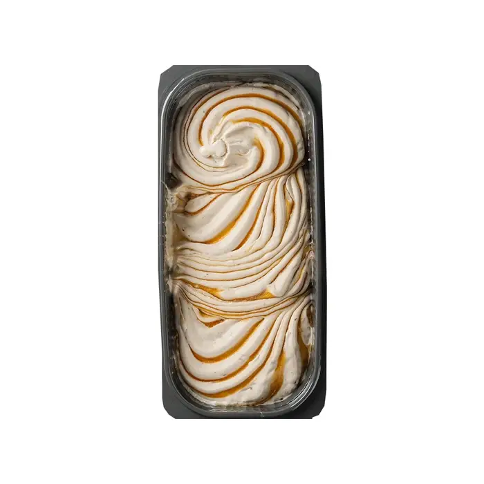 Мороженое жирностью 13% обладает мягкой кремовой текстурой с кусочками хрустящих орехов, нежным карамельным вкусом с древесными оттенками и сливочным ароматом с нотами корицей.