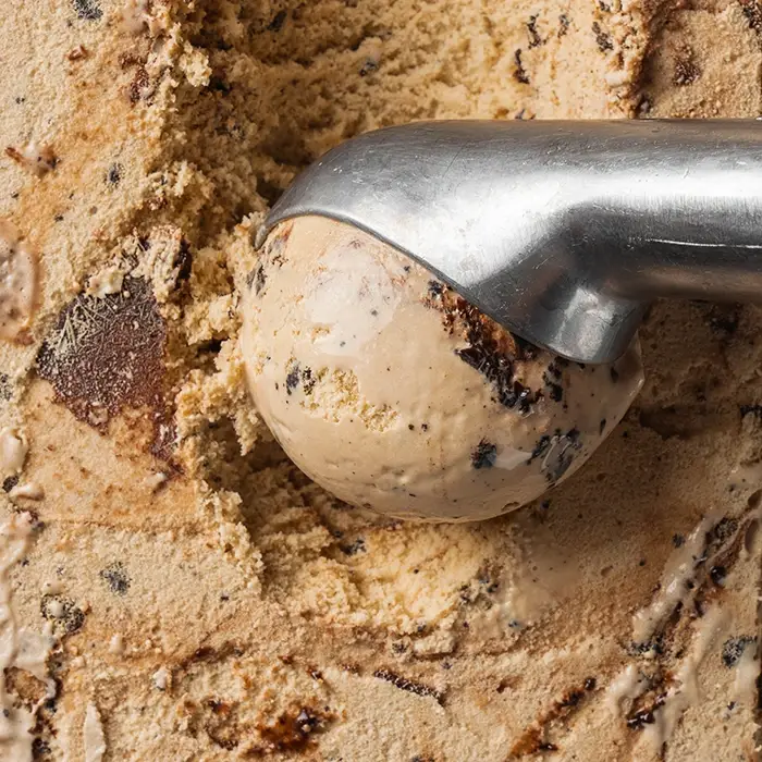 Пломбир — классический мороженый десерт с характерной нежной кремовой текстурой и насыщенным вкусом. Мороженое жирностью 11,7% имеет мягкую консистенцию с кусочками хрустящего шоколадного печенья, яркий сливочный вкус и кофейный аромат с древесно-карамельными нотами.