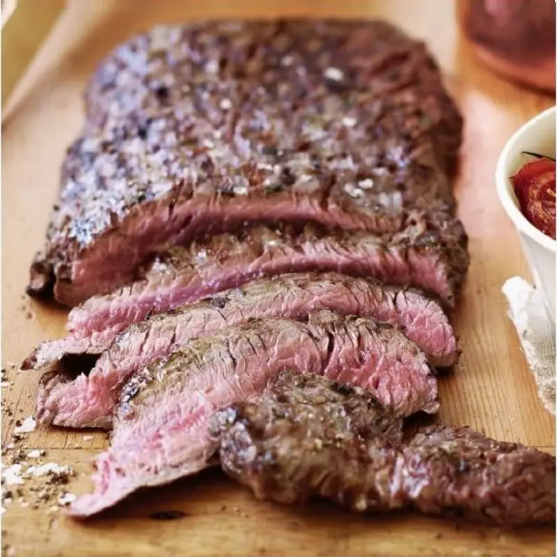 Мачете – отруб из тонкой диафрагмы животного. Второе название – outside skirt: вытянутая мышца, прикрепленная к ребрам. Нежное сочное мясо с тонким вкусом. Мачете отличается высокой мраморностью. Форма стейка напоминает легендарный латиноамериканский клинок, который сложно с чем-то спутать.
