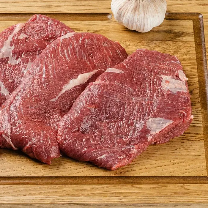 Мясо премиум-класса из бычков породы Абердин Ангус, выращенных на кукурузном откорме. Продукт отличается нежной текстурой, приятным ароматом и минимальным количеством жира.