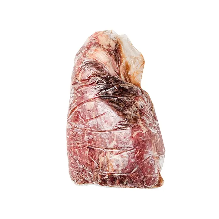 Кусок мраморной говядины без костей и грубых сухожилий. Ростбиф Black Angus имеет много мелких жировых прослоек по всему куску, при термической обработке они тают, делая мясо сочным и нежным.