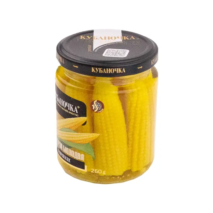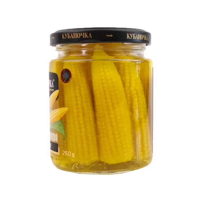 Консервированная кукуруза в стеклянной банке с миниатюрными початками для ваших кулинарных шедевров!