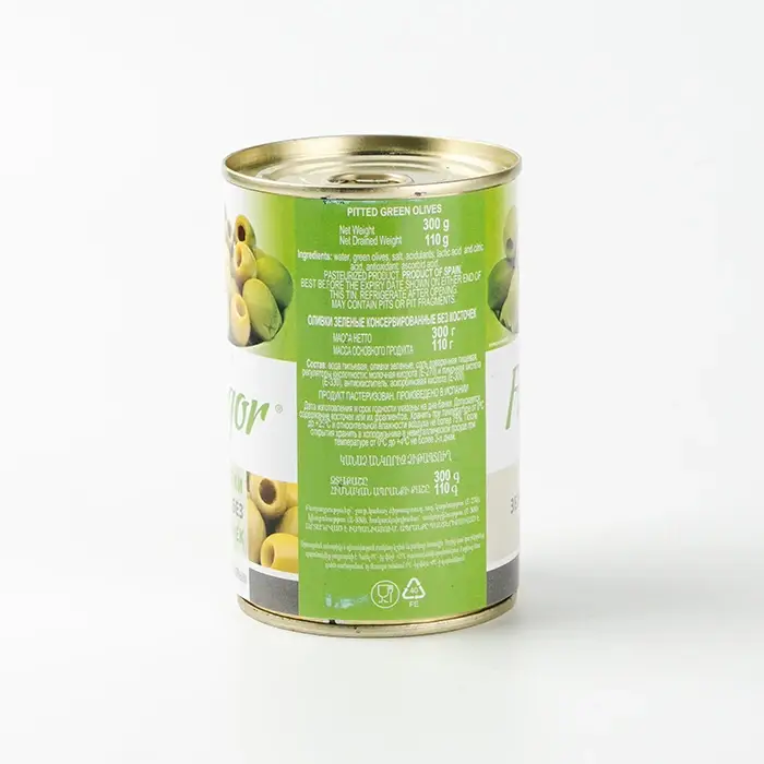 вода питьевая, оливки зеленые, соль поваренная пищевая, регулятор кислотности: молочная кислота (Е270) и лимонная кислота (Е330), антиокислитель: аскорбиновая кислота (Е300)