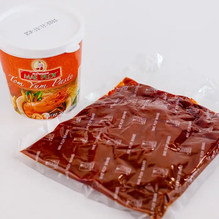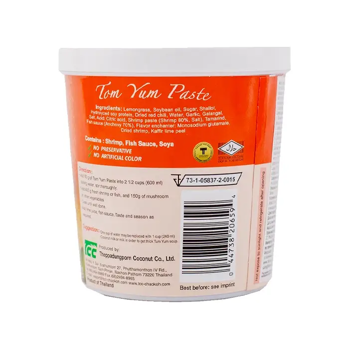 Паста Том Ям — готовый концентрат для приготовления тайского супа. Паста имеет красновато-коричневый цвет, густую, кремообразную, однородную консистенцию с мелкими частицами молотых специй, цитрусово-травяной аромат и сбалансированный вкус с необжигающей остротой и легкой кислинкой.