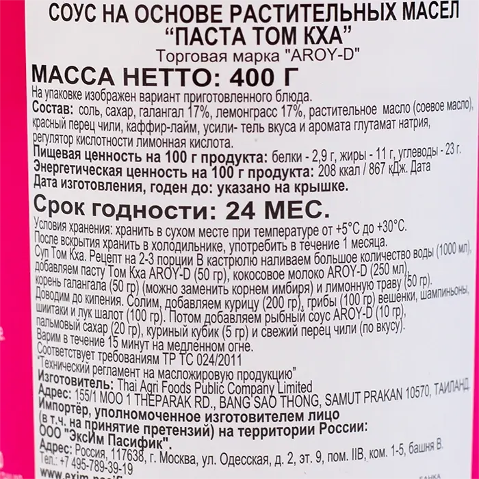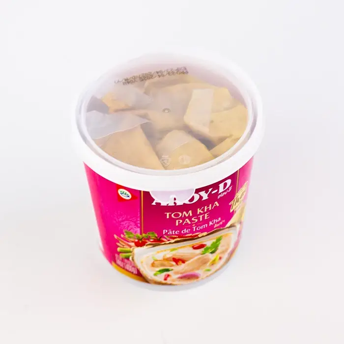 Паста Том Кха — готовый концентрат для быстрого и легкого приготовления тайского супа Том Кха. Паста имеет густую, кремообразную, однородную консистенцию с мелкими частицами молотых трав и специй, сливочный вкус кокосового молока, яркую остроту перца, цитрусовую свежесть и пряный аромат тайских трав.