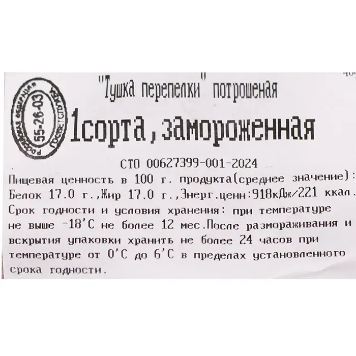 Перепелки тушка «Кьюэгг», вес 1 шт/140-170 г/ подложка 500-700 г