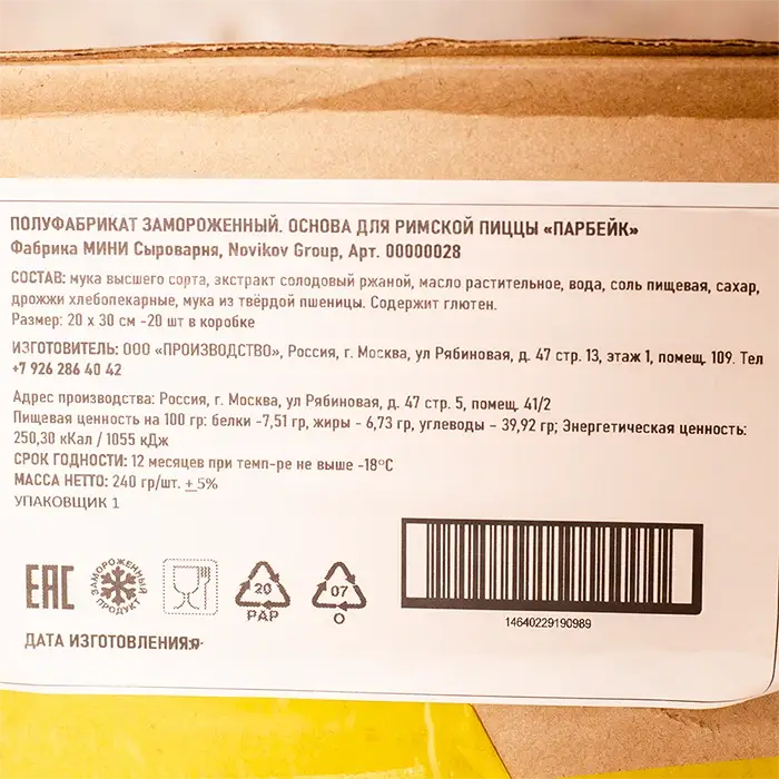 Основа для пиццы (парбейк 20*30 см) «Минисыроварня», 240 гр
