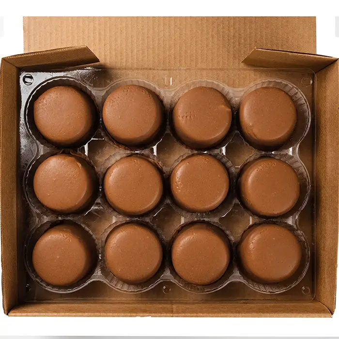 После разморозки пирожное имеет нежную свежую структуру и насыщенный шоколадный вкус.