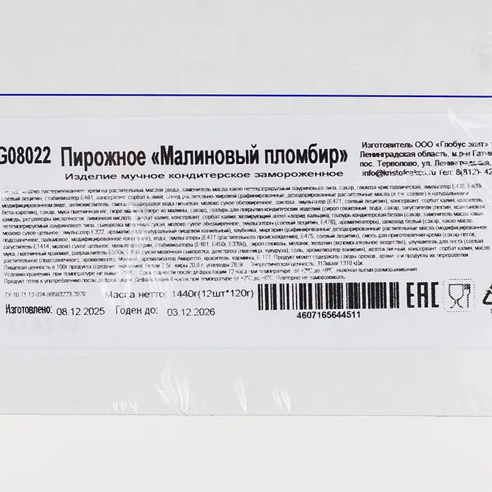 Пирожное Малиновый пломбир «Кристоф», 12 порций, 1,44 кг
