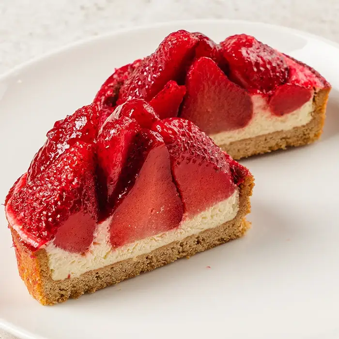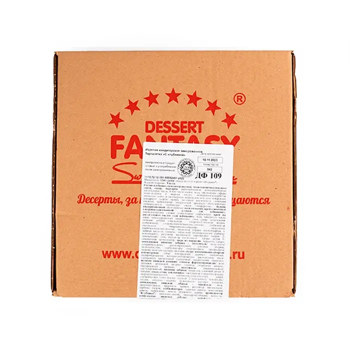 Клубника свежемороженая; мука пшеничная высшего сорта; маргарин (рафинированные дезодорированные растительные масла, в том числе соевое, вода, эмульгаторы (эфиры полиглицерина и жирных кислот, полиоксиэтиленсорбитан моноолеат, моно- и диглицериды жирных кислот), соль поваренная, консервант — сорбат калия, регулятор кислотности — лимонная кислота), ароматизатор, натуральный краситель — бета-каротин, антиокислитель — концентрат смеси токоферолов; меланж пастеризованный (яйцо куриное); сахар; крем на растительных маслах «для взбивания»: вода, заменитель масла какао нетемперируемый лауринового типа, сахар, комплексная пищевая добавка (эмульгатор — стеароил-2-лактилат натрия, стабилизатор — гидроксипропилметилцеллюлоза, стабилизатор — целлюлоза микрокристаллическая, загуститель — карбоксиметилцеллюлоза, эмульгатор — эфиры полиглицерина и жирных кислот), глюкоза, эмульгатор — полиоксиэтилен сорбитан моностеарат, регулятор кислотности — ортофосфат натрия 2-замещенный, соль, регулятор кислотности — цитрат натрия 3-замещенный, ароматизатор; крем сливочный ультрапастеризованный «сливки для взбивания»: нормализованные сливки, стабилизатор — каррагинан; пюре из маракуйи: маракуйя, сахар; сироп клубничный: сахар, вода, ароматизатор пищевой «Клубника», регулятор кислотности — лимонная кислота, консервант — бензонат натрия, краситель пищевой — Кармин; комплексная пищевая добавка — загуститель: загустители (дикрахмаладипат ацетилированный, альгинат натрия), мальтодекстрин, стабилизаторы (пирофосфаты, ортофосфаты натрия), носитель — сульфат кальция; пудра декоративная сахарная кондитерская: сахар виноградный, крахмал пшеничный, нерафинированное негидрогенизированное растительное масло (пальмовое), ароматизатор идентичный натуральному (ванилин); патока высокоосахаренная — глюкозный сироп; желатин пищевой; фруктоза кристаллическая — загуститель: дикрахмаладипат ацетилированный; клубничная основа концентрат: сок клубничный концентрированный, сироп глюкозно-фруктозный, сахар, вода, регулятор кислотности — лимонная кислота, ароматизатор натуральный «Клубника»; сок вишневый концентрированный; пищевая добавка — краситель сахарный колер I простой; глюкоза ферментированная; комплексная пищевая добавка — краситель: вода, пропиленгликоль, краситель — кармин, регулятор кислотности — карбонат натрия; глюкоза; сок шиповниковый концентрированный; регулятор кислотности — лимонная кислота; стабилизаторы: гуаровая камедь, ксантановая камедь, каррагинан, камедь рожкового дерева; комплексная пищевая добавка — краситель: вода, пропиленгликоль, эмульгатор — полиоксиэтилен, краситель — кармин, эмульгатор — соевый лецитин, краситель — экстракт паприки, стабилизатор — ксантановая камедь.