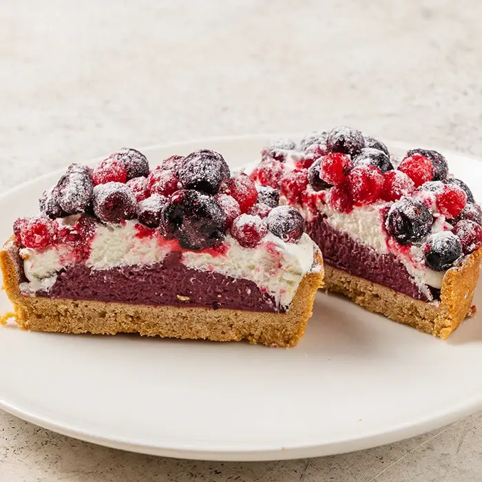 Малина замороженная, мука пшеничная в/с, голубика замороженная, шоколад белый, молоко коровье, сахар, крем на растительных маслах, маргарин, малина грис замороженная, меланж пастеризованный (яйцо куриное), сливки из коровьего молока, желток яичный пастеризованный, мука миндальная, пудра сахарная "нетающая", загуститель "сафтия", крахмал нативный, смесь модифицированных крахмалов, стабилизатор ксантовая камедь, лимонная приправа. Продукт содержит аллергены: глютен, молокопродукты, яйцепродукты, соевый лецитин. Может содержать следы рыбы, арахиса, орехов.