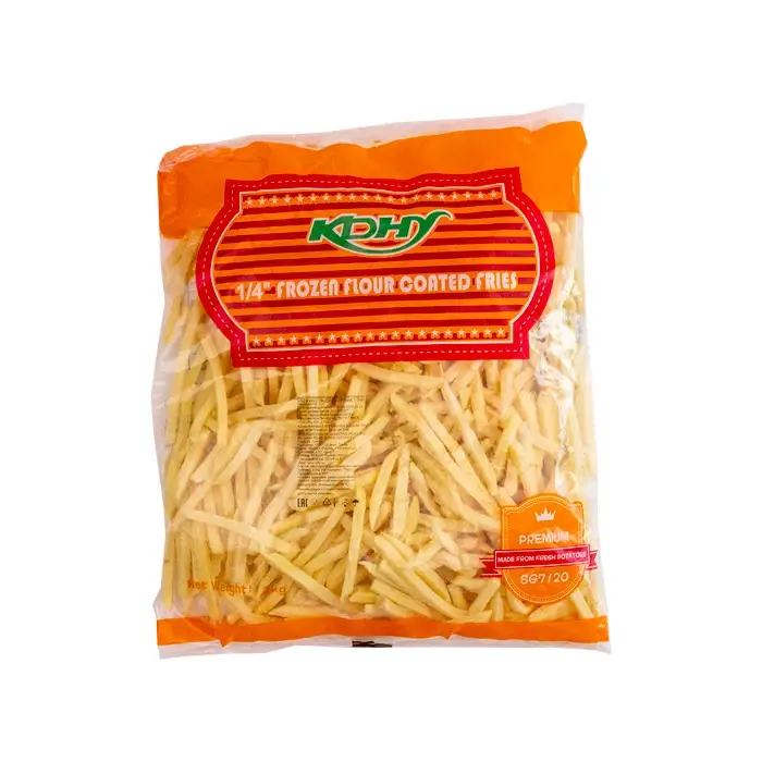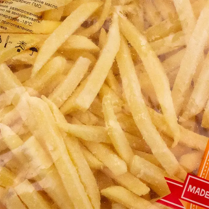 Картофель фри в панировке — это предварительно обжаренные и нарезанные картофельные бруски 7х7 средней толщины, покрытые аппетитной хрустящей панировкой, которая при жарке образует идеальную золотистую корочку. Имеет вкус и текстуру натурального картофеля.