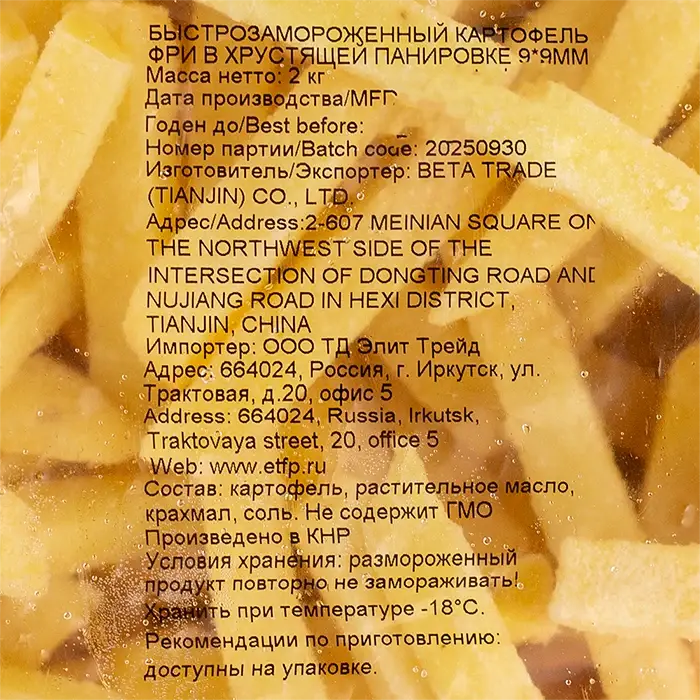 Картофель фри 9х9 мм в хрустящей панировке Beta Trade, 2 кг