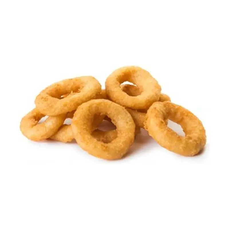 Лук репчатый замороженный, сухари панировочные [мука пшеничная, соль, масло растительное подсолнечное рафинированное дезодорированное, дрожжи, сахар, вода питьевая, эмульгаторы (Е471, Е472е), антиокислитель Е300], масло растительное подсолнечное рафинированное дезодорированное (содержит антиокислитель Е306), вода питьевая, мука (пшеничная, из твердых сортов пшеницы, рисовая), крахмал кукурузный, соль, сахар, загустители (Е401, Е425(i)), разрыхлители (E450(i), E500(ii)), стабилизатор Е1420, глютен пшеничный, белок яичный сухой, перец черный молотый.