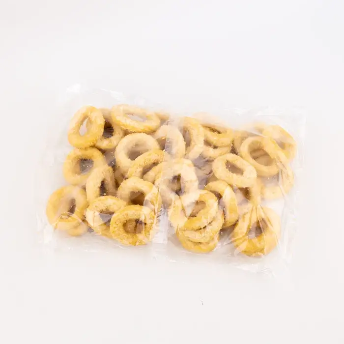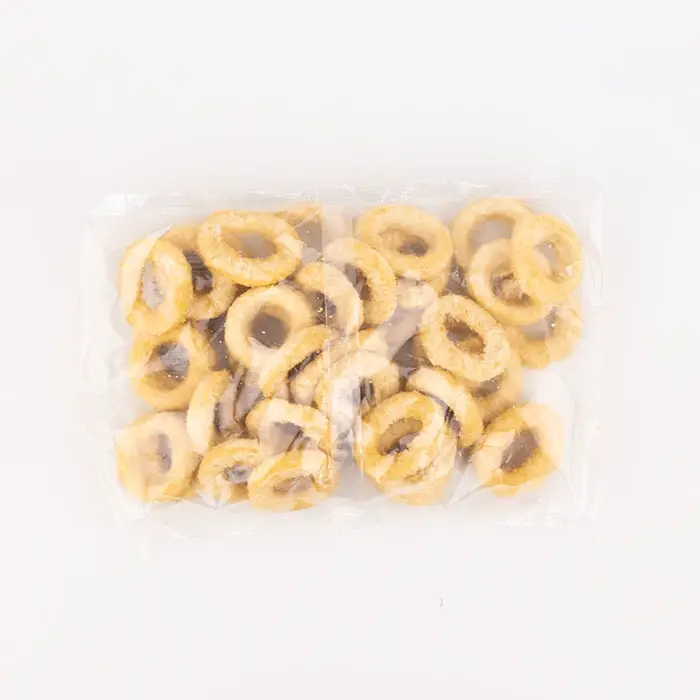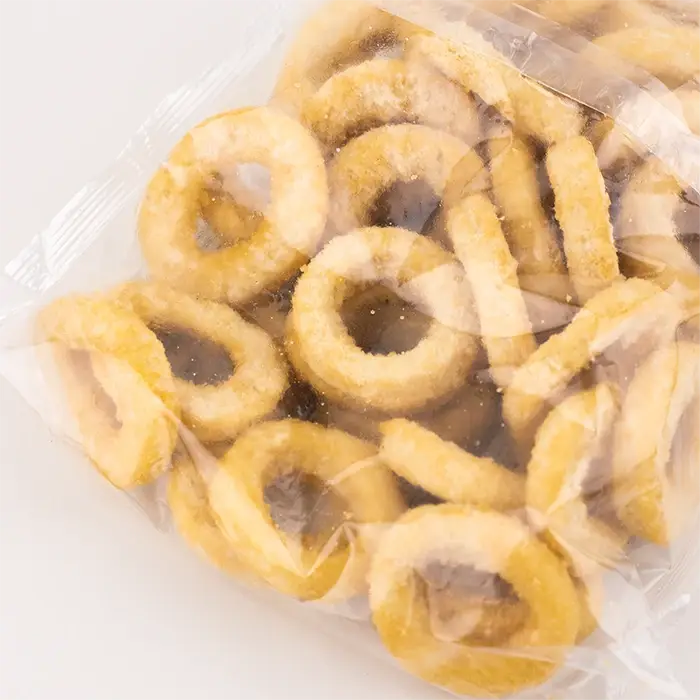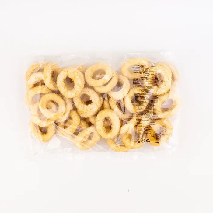 Цельные кольца в панировке имеют хрустящую, золотистую текстуру и насыщенный луковый вкус с легкой сладостью и пикантными нотами, пряный аромат. Кольца не слипаются при приготовлении.