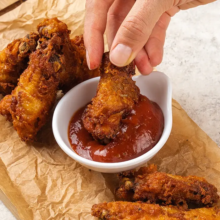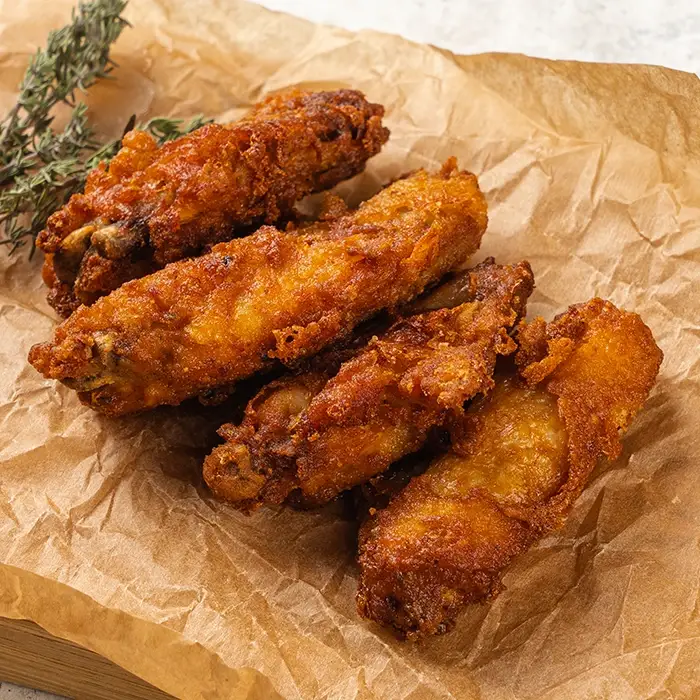Аппетитные куриные крылышки в золотистой хрустящей панировке имеют нежную сочную текстуру, острый вкус и яркий пряный аромат.