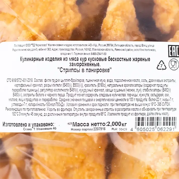 Стрипсы куриные цельномышечные панированные, "Черкизово" 2 кг