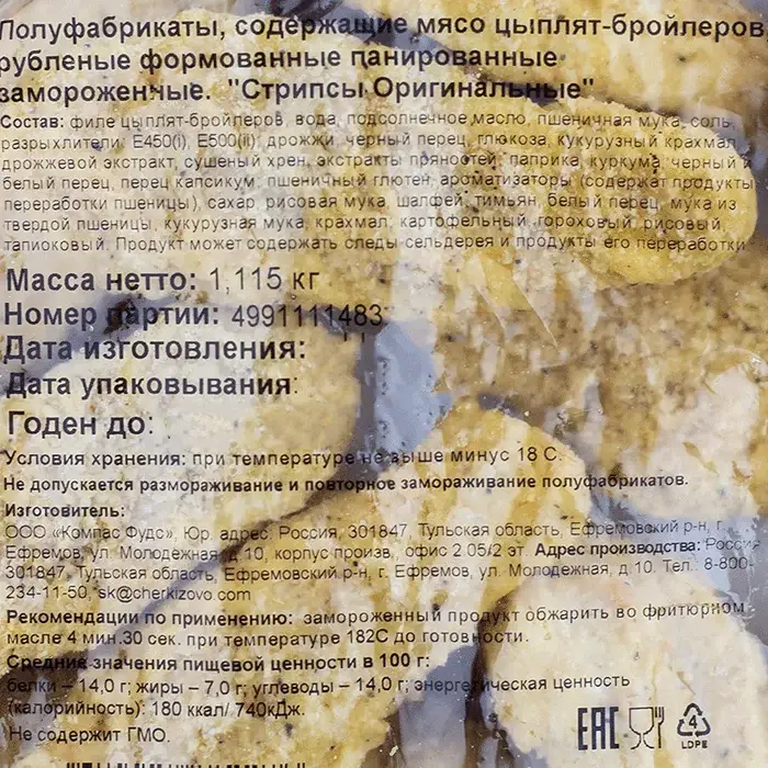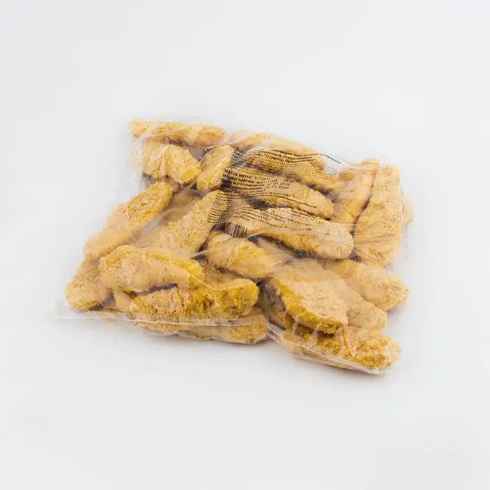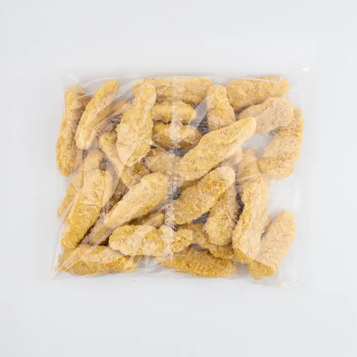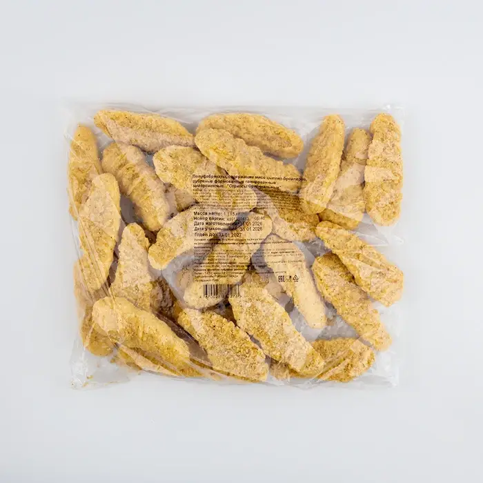 Стрипсы обладают упругой и нежной консистенцией сочного куриного мяса, покрытого хрустящей золотистой корочкой. Стрипсы имеют насыщенный мясной вкус с перечными нотами и пряный аромат.