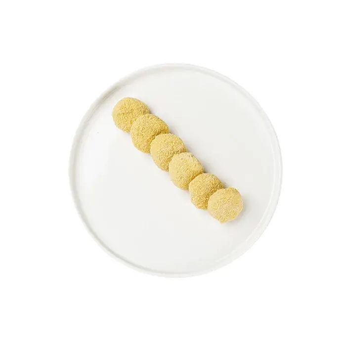 Медальоны с нежным солоноватым сулугуни в хрустящей панировке после приготовления приобретают золотистую корочку, а начинка плавится и становится аппетитно тягучей. Продукт можно подавать как самостоятельное блюдо, а также в качестве элемента в теплом салате.