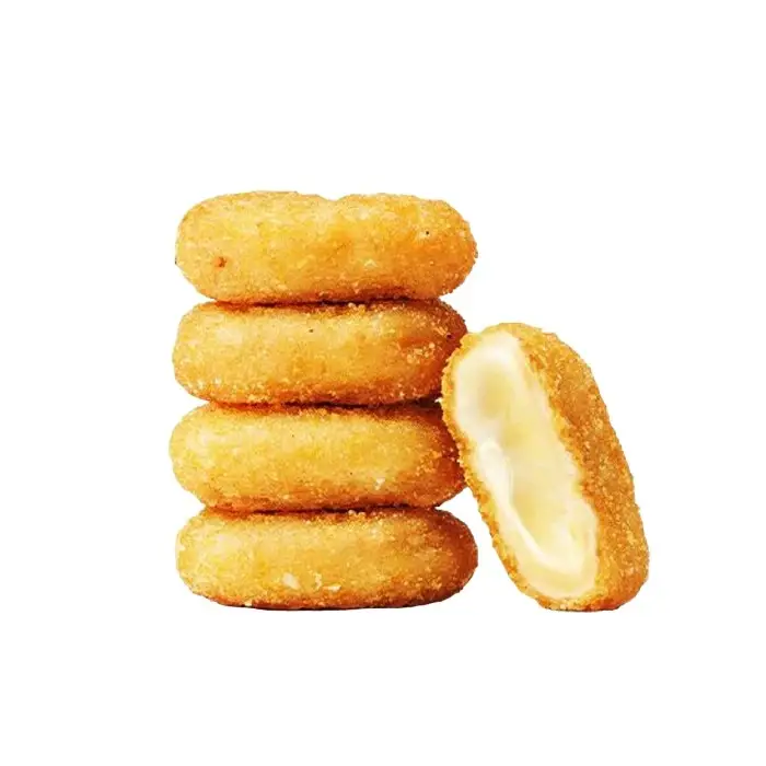 Сыр сулугуни (молоко пастеризованное, закваска молочнокислых микроорганизмов, молокосвертывающий ферментный препарат, соль пищевая), панировочные сухари (пшеничная мука, вода, дрожжи, куркума), крахмал кукурузный, пшеничная мука, клетчатка пшеничная, соль пищевая, мальтодекстрин, ксантановая камедь, антиокислитель аскорбиновая кислота, крахмал картофельный. Продукт может содержать следы горчицы.