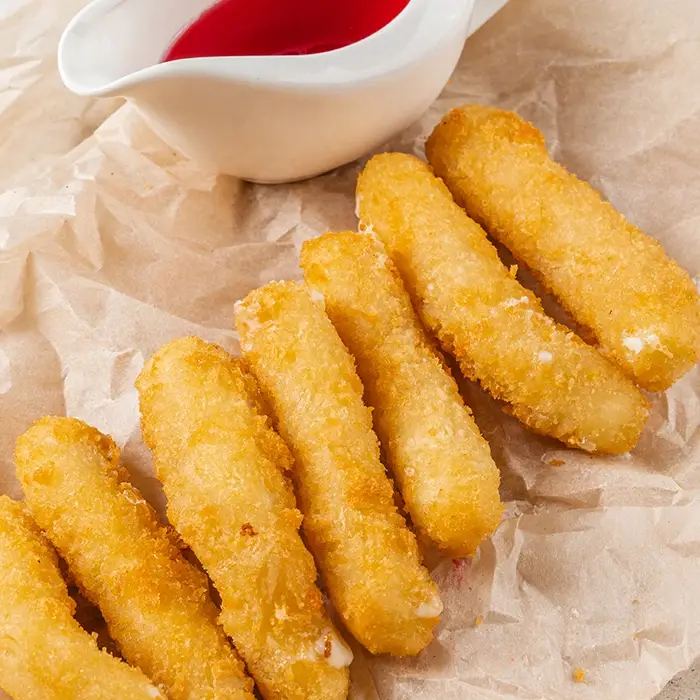 Сырные палочки в хрустящей панировке с использованием сыра моцарелла в качестве начинки.