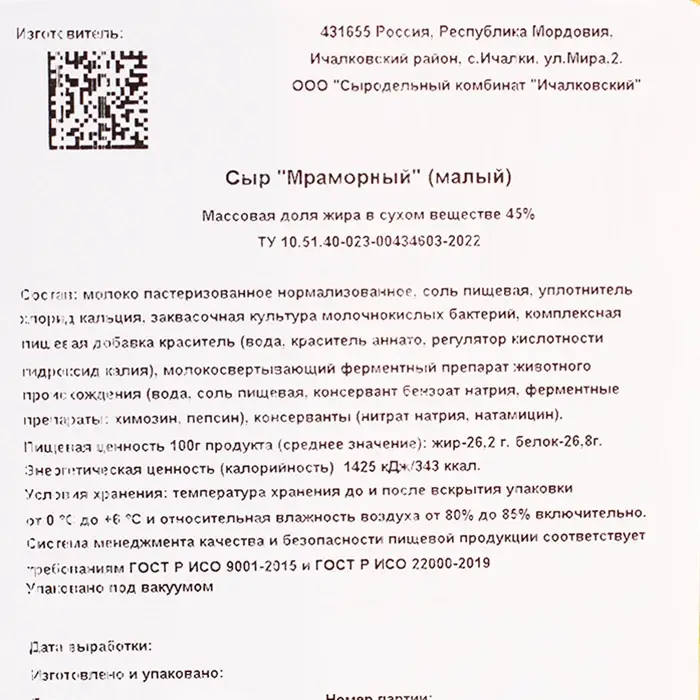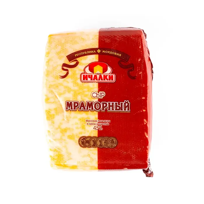 Сыр полутвердый 45% Мраморный «Ичалки», брус, 1,5 кг