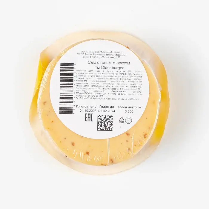 Сыр полутвердый с грецким орехом 50% Oldenburger, цилиндр, 350 гр