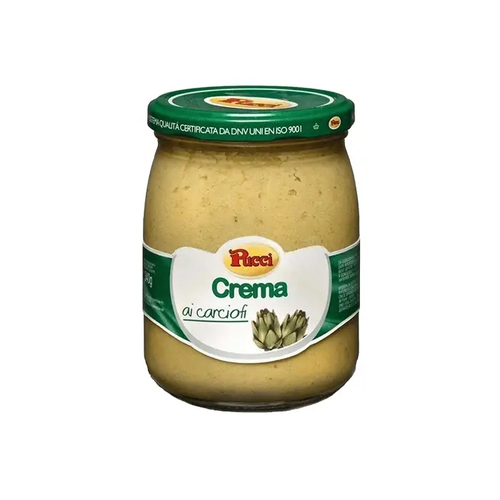 Соус из мелконарезанных артишоков с добавлением подсолнечного масла имеет сливочный вкус, густую текстуру.