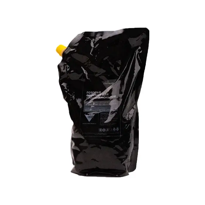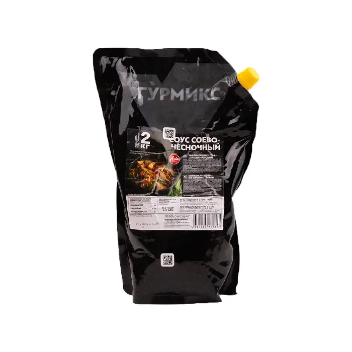 Большой дой-пак с устойчивым дном удобен в использовании, а дозатор позволяет экономно расходовать продукт и гигиенично наливать соус прямо в блюдо.