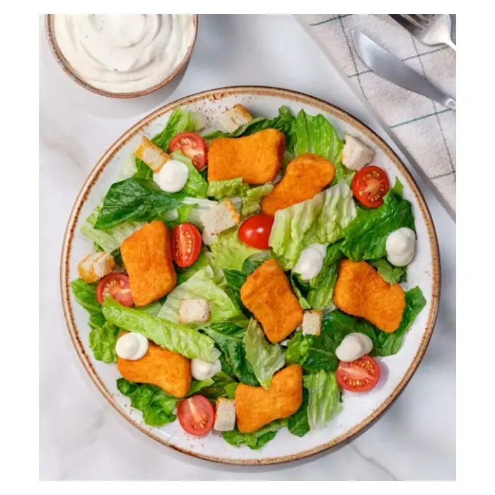 Вегетарианские наггетсы имеют вкус и аромат мяса, хрустящую панировку, состоят из 100% безопасного текстурированного белка из бобовых культур, не требуют разморозки.