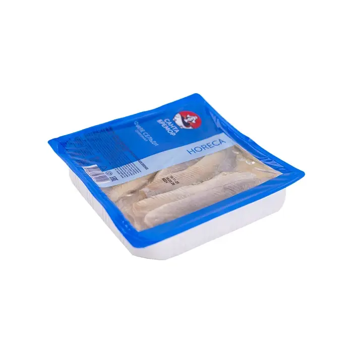 Слабосоленый посол без добавления усилителей вкуса придает рыбе солоноватые и пряные ноты. Масло добавляет рыбе сочности и продлевает ее свежесть. Филе очищено от кожи и брюшных костей (возможно наличие мелких костей).