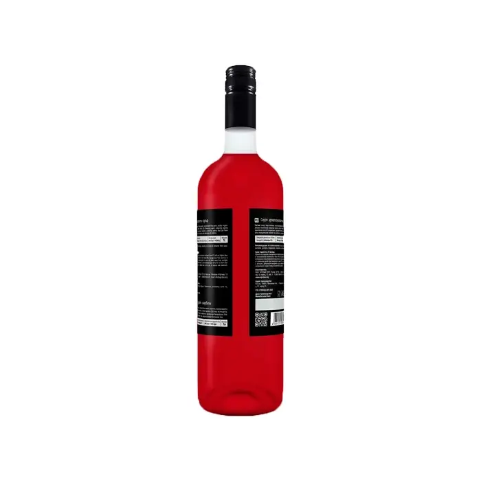 Сироп красного оттенка имеет насыщенный малиновый вкус с ягодной кислинкой. Продукт сочетается с горячими и холодными напитками и десертами. Стеклянная бутылка экологична, безопасна, не пропускает неприятные запахи и не влияет на вкус продукта, удобна в использовании.
