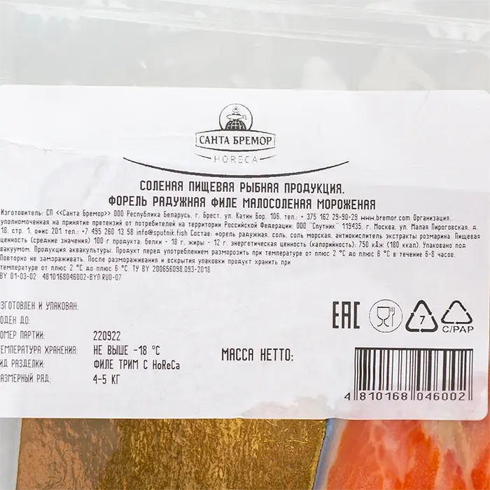 Филе форели слабой соли «Санта Бремор», трим С, 1,5+