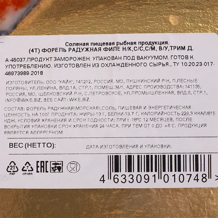 - вакуумная упаковка сохраняет вкус и аромат форели надолго